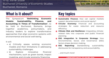 Call for Papers: Symposium “Rethinking Economic Models: Sustainability, Finance, and Accounting in Times of Transformation” Bucharest University of Economic Studies, Bucharest, Romania 11-12 June 2026 The global economy faces unprecedented challenges, from climate change and resource depletion to financial instability and technological disruption. Traditional economic models, often prioritising short-term growth over long-term sustainability, are increasingly