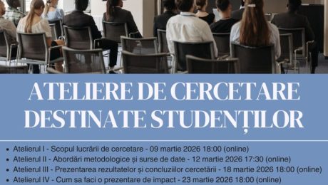 Facultatea de Contabilitate și Informatică de Gestiune organizează, ca parte a Sesiunii Științifice Studențești ce va avea loc pe 2 aprilie 2026, 4 ateliere interactive online, după cum urmează: Atelierul I – Scopul lucrării de cercetare – 09/03/2026 18:00 Atelierul II – Abordări metodologice și surse de date – 12/03/2026 17:30 Atelierul III – Prezentarea