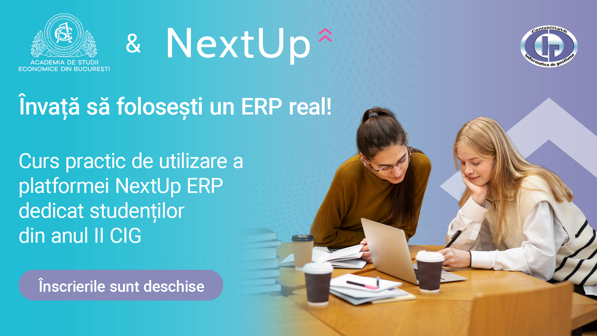 Facultatea de Contabilitate și Informatică de Gestiune, în parteneriat cu NextUp, lansează un program educațional exclusiv în care veți învăța să operați un sistem ERP real – NextUp – utilizat în mediul de afaceri.